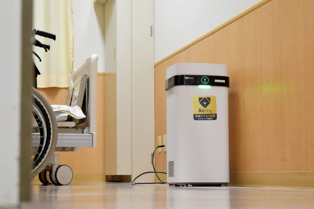 急性期医療の最前線として高度なウイルス対策を追求する同院では、入院病室全室、職員が集まる場所(会議室など)にエアドッグを設置されています。「職員が安心して働ける環境こそが、医療の質を維持し、患者様からの信頼を得る基盤、これはコストでなく未来への、そして職員への投資です」というお声をいただいています。