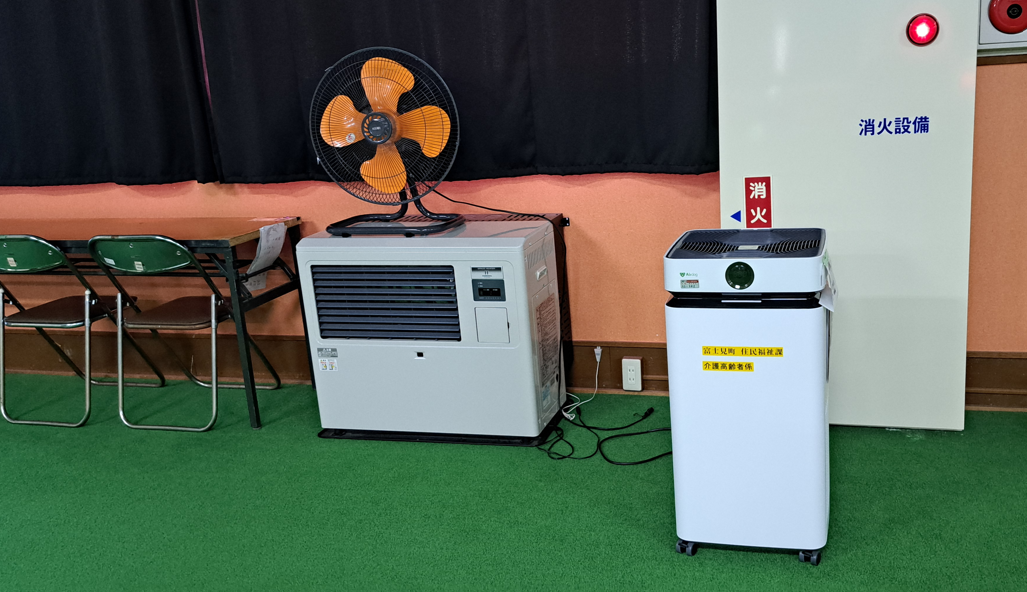 「清泉荘では、高齢者の運動教室やゲートボール等を行うための屋内運動施設が福祉避難所となるため、平時から稼働させることで避難所の空気環境改善の対策に取り組みます。空気環境が良くなることに加え、夏場冬場の窓開け換気が減らせるため、室内温度を保ちやすく電気代も抑えることができて大好評です」とのお声をいただいています。