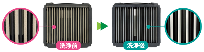 「1.プレフィルター」「2.イオン化ワイヤーフレーム」「3.集塵フィルター」の洗浄品を宅配便でお届けします。お客様ご自身で汚れたフィルターと交換していただき、届いた梱包材に納めて返送するだけです。